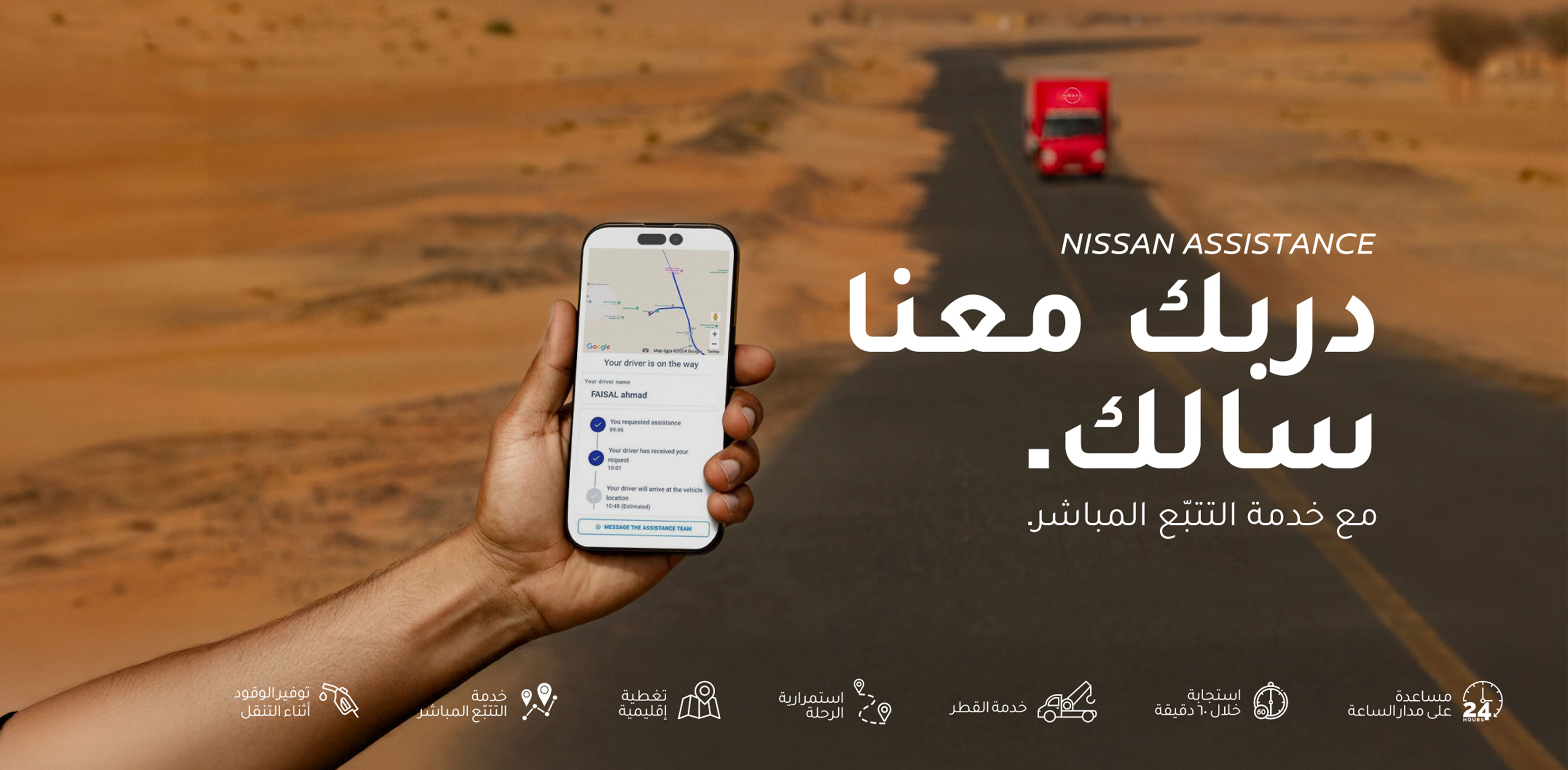 اكتشف راحة البال مع مساعدة نيسان، حيث نقدم لك دعمًا على مدار الساعة مع خدمة بسيطة وسلسة. فريق مساعدة نيسان على بُعد مكالمة واحدة، جاهز لإعادتك أنت ونيسان إلى الطريق في جميع أنحاء الشرق الأوسط.